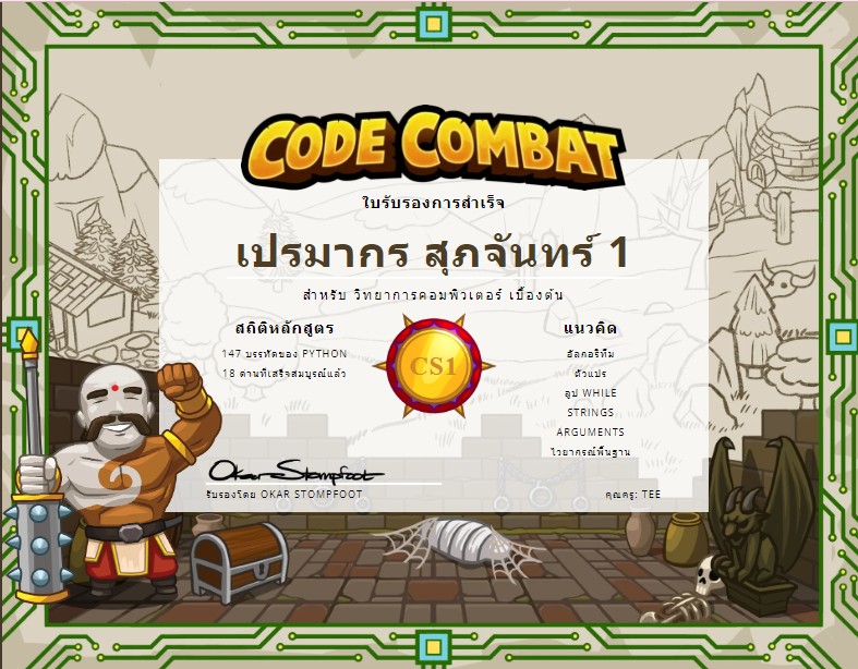 รายวิชาเสริมทักษะเทคโนโลยี ม.2 (Code Combat)
