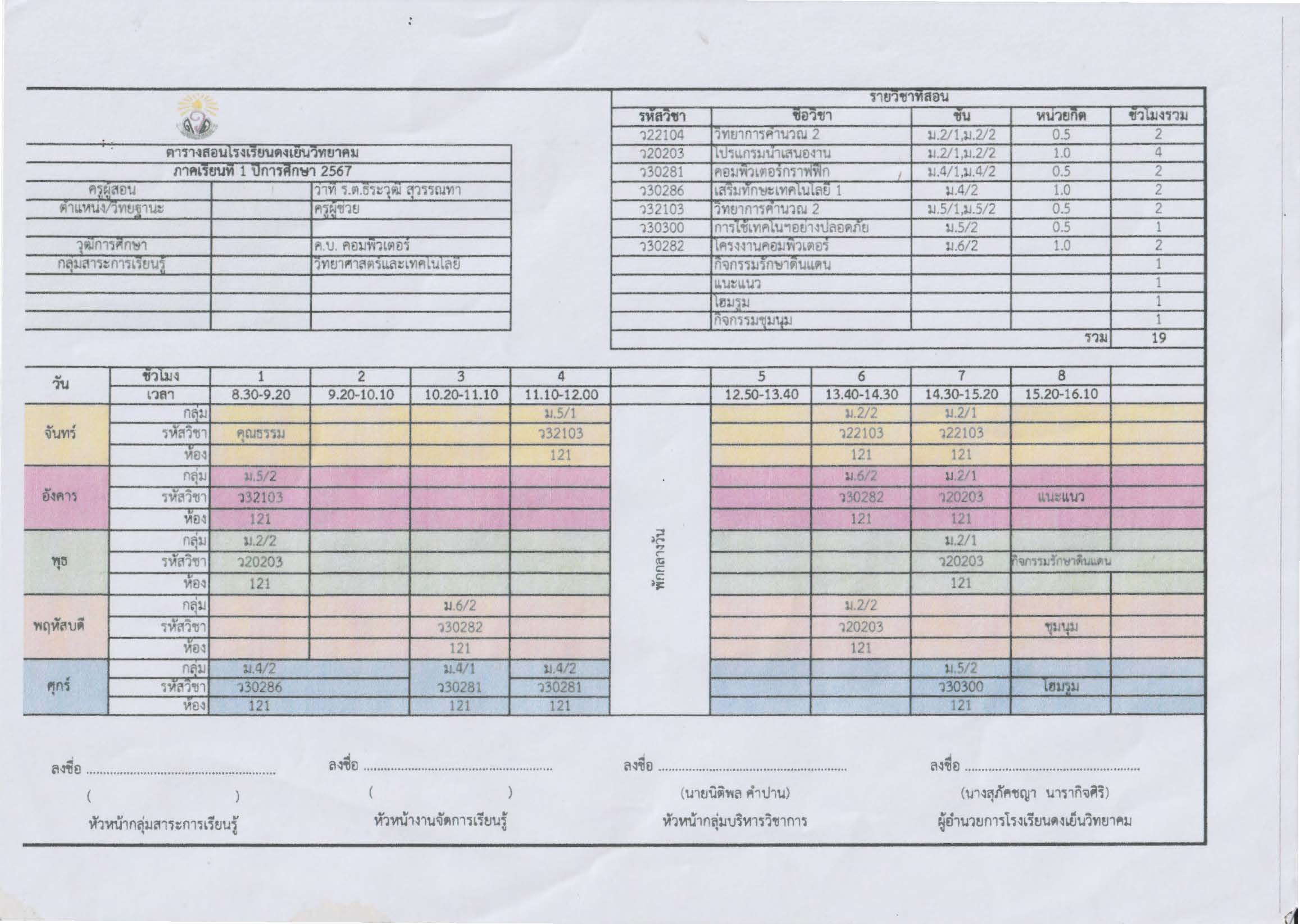 ตารางเรียนภาคเรียนที่ 1/2567