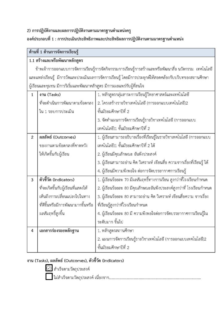 องค์ประกอบที่ 1 : การประเมินประสิทธิภาพและประสิทธิผลการปฏิบัติงานตามมาตรฐานตำแหน่ง