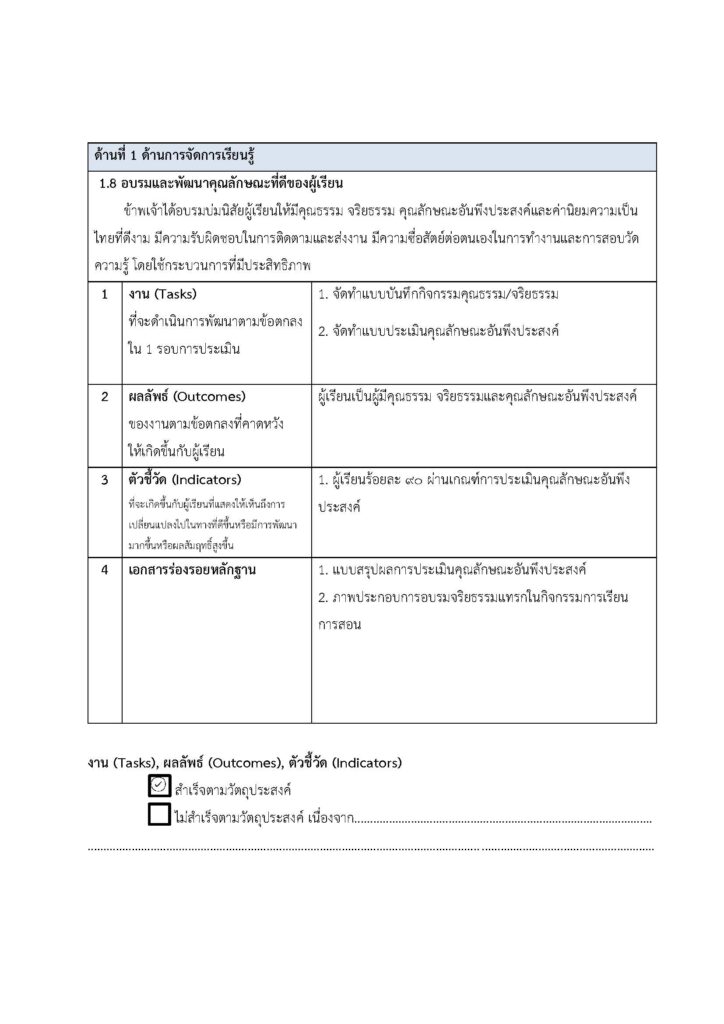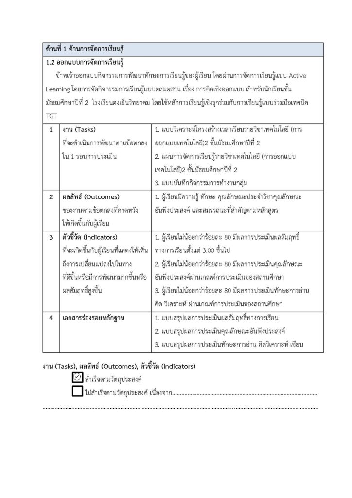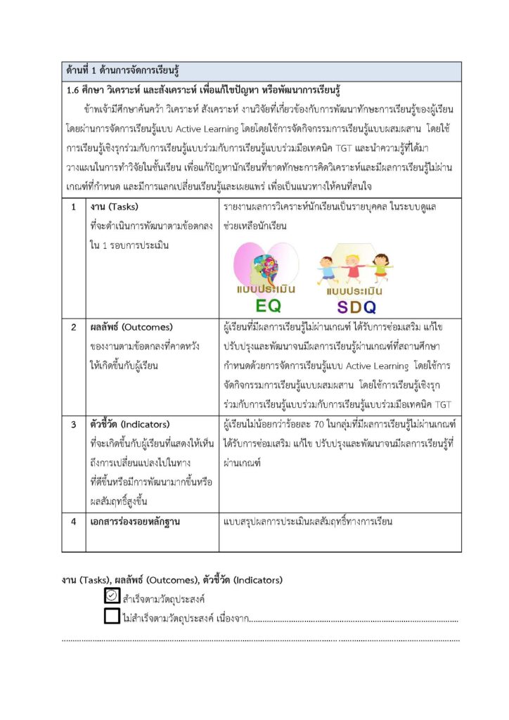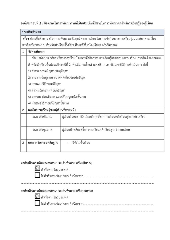 องค์ประกอบที่ 2 : ข้อตกลงในการพัฒนางานที่เป็นประเด็นท้าทายในการพัฒนาผลลัพธ์การเรียนรู้ของผู้เรียน