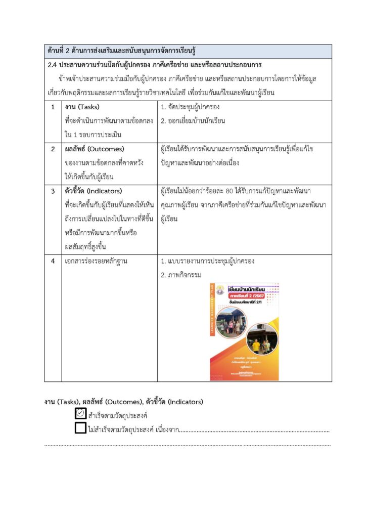 2.4 ประสานความร่วมมือกับผู้ปกครอง ภาคีเครือข่าย และหรือสถานประกอบการ