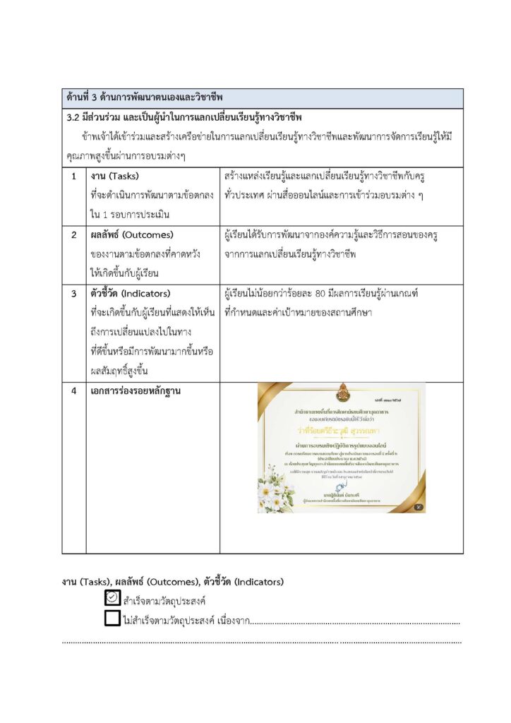 ด้านที่ 3 ด้านการพัฒนาตนเองและวิชาชีพ