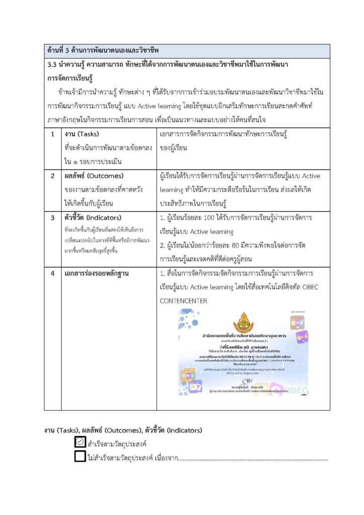 3.3 นำความรู้ ความสามารถ ทักษะที่ได้จากการพัฒนาตนเองและวิชาชีพมาใช้ในการพัฒนา การจัดการเรียนรู้